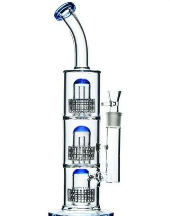 12.9" Tall Clear/Blue Durable Triple Perc Water Pipe